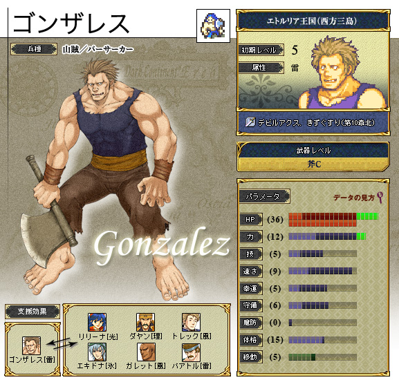 トラキアは資金繰りキツキツなクセに剣はゴミ性能な割に高過ぎるんじゃ。評価無視した闘技場稼ぎでもしなきゃ奪った鉄の剣とかがメインだわ。斧は鉄ですらDナイト上から叩き割れたが