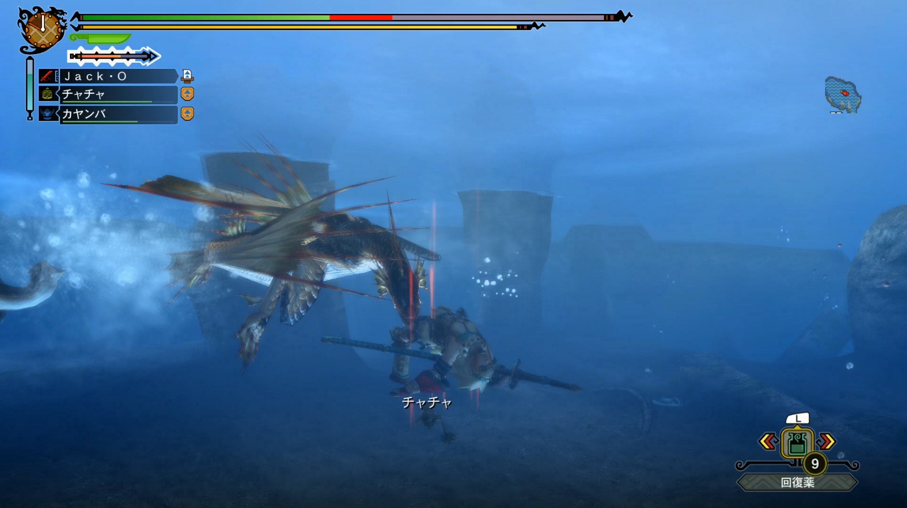 特に大剣の溜め切り入ると陸地より怯みが多くて爽快感があった。
