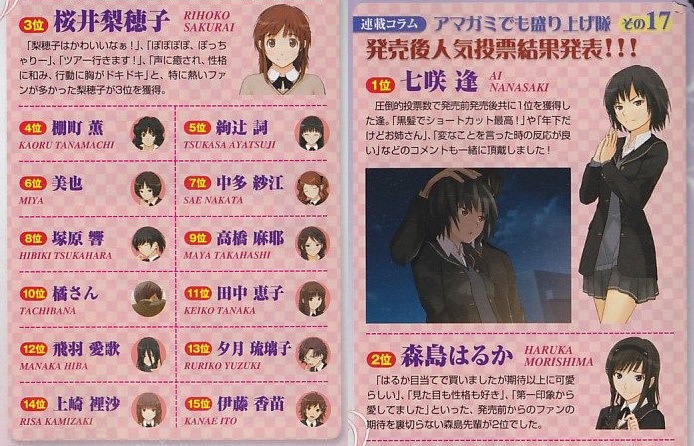 んでアニメ版アマガミしか知らない連中は七咲とか棚町とかわかりやすいキャラを好きになる傾向