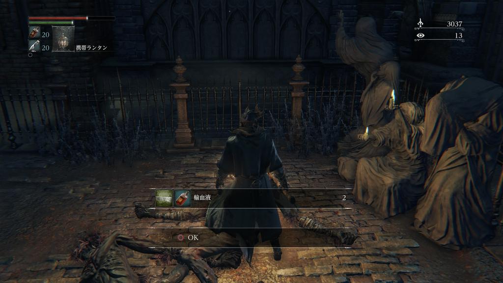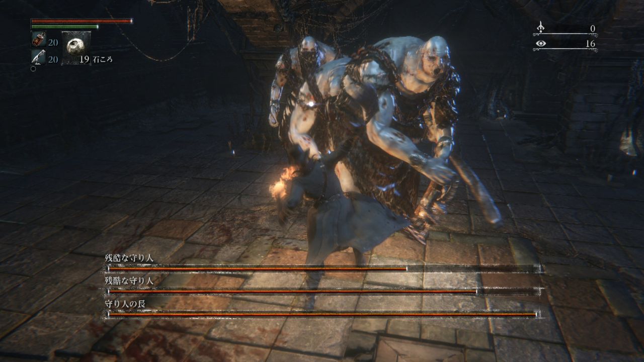 スタートしてからちょっとしてヤーナム市街ってとこについて住民に話でも聞くかと思ったら全部敵で参った