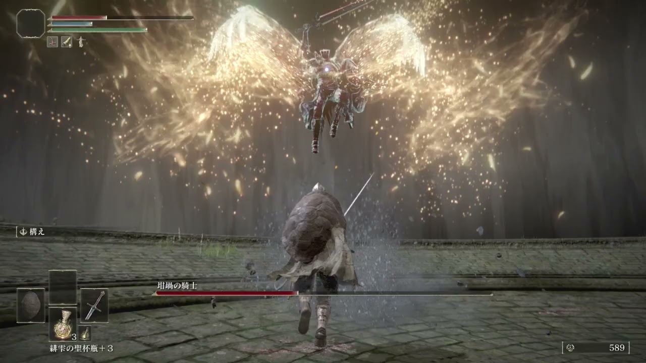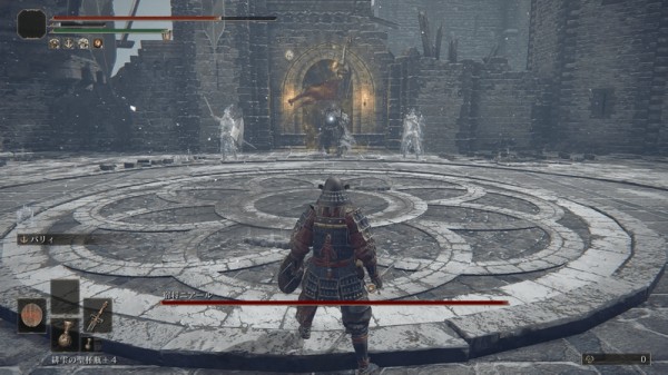 お供の失地騎士2体はあまり好戦的でないしパリィ出来れば楽勝、、失地騎士が生きてる間は二アールがあまり動かない