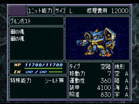 3回行動、フルブロック、底力持っててこいつの攻撃受けたユニットは精神コマンド禁止や