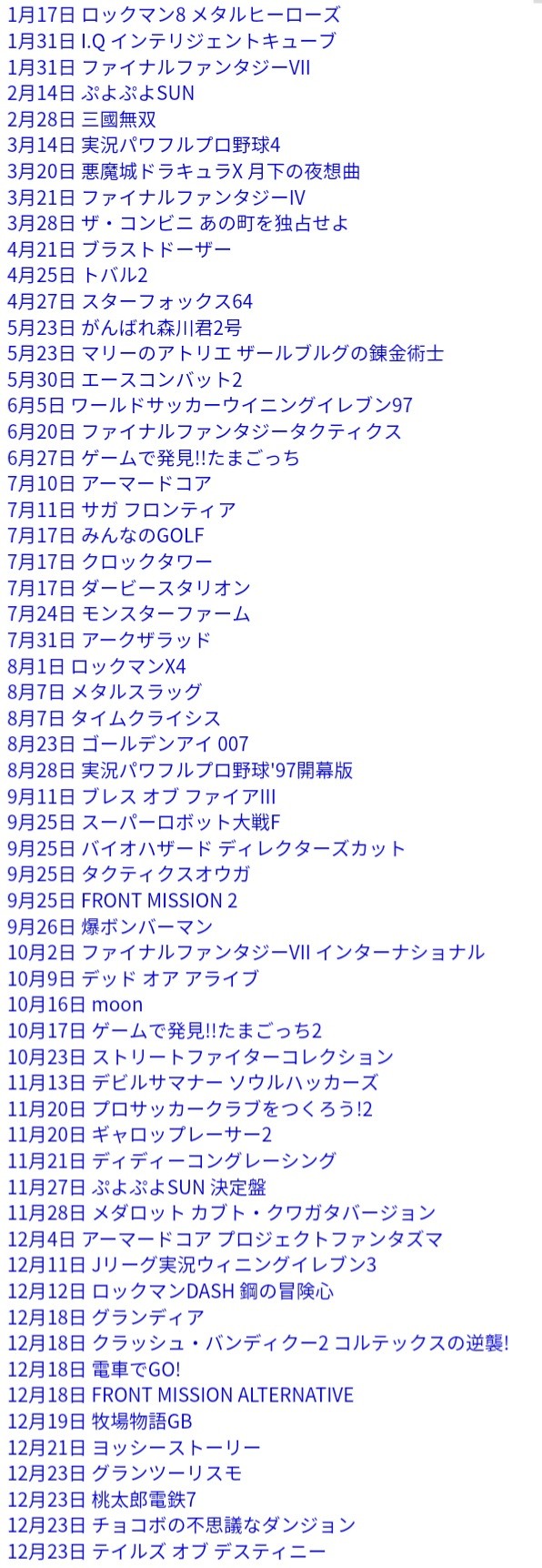 FF7、FFT、サガフロ、チョコボが同じ年かよ