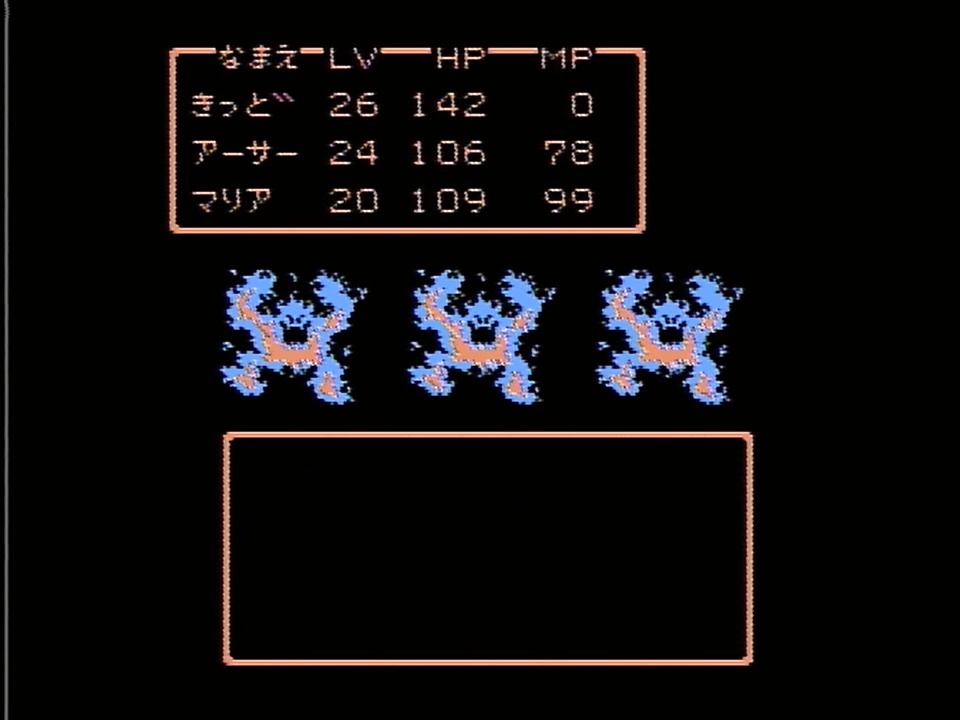 ↑これでもわりとキツいぞ、ドラゴン×4とかブリザード×4なんかは先制されたり逃げ損ねたりしたらパーティー半壊するし。「万全の準備した上で運ゲー」だから