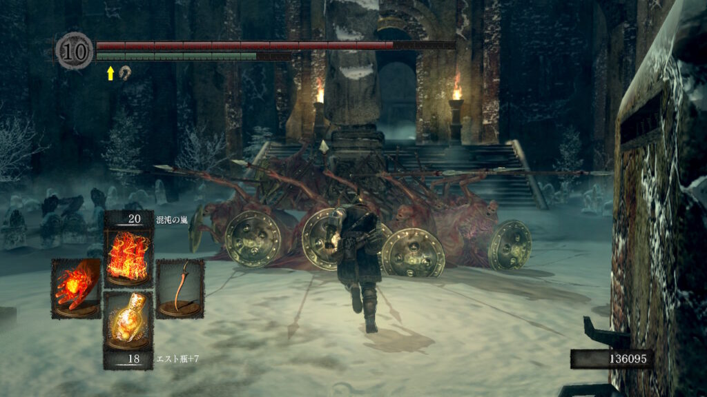 スキュラの群れにソウルの槍ぶち込んで人間性とソウル稼いでる時