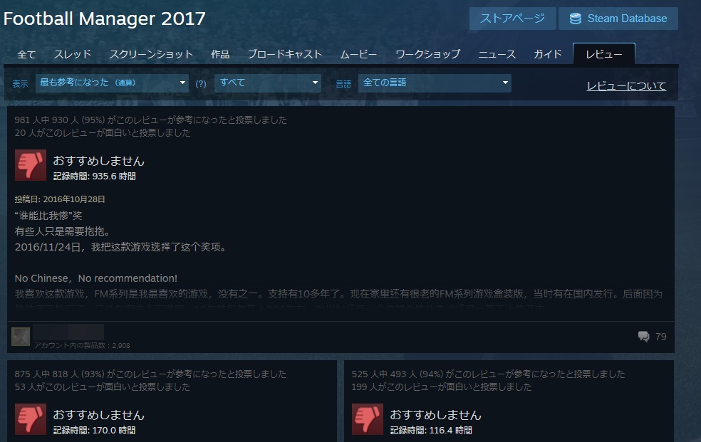 観る側が自分の基準でレビューを選別できるシステムがあるのに、システムが悪いとかsteam使ったことないんだね